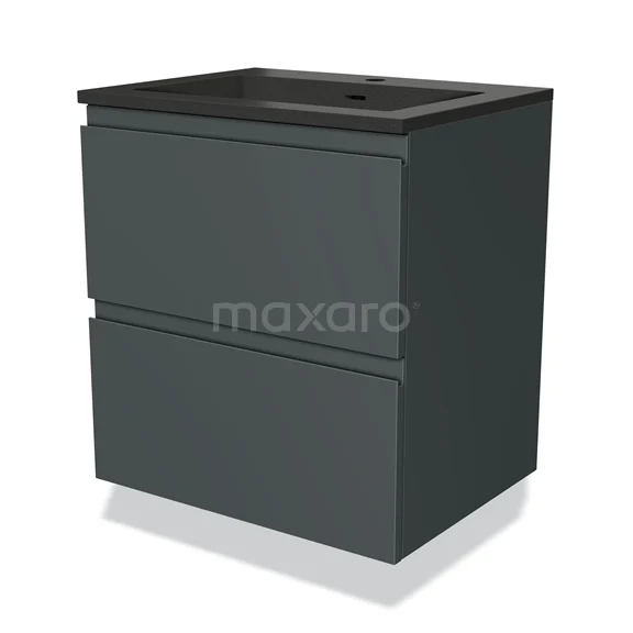 Modulo Waschtische | 60 cm Dunkelgrau Grifflos front Quarz 2 übereinanderliegende Schubladen