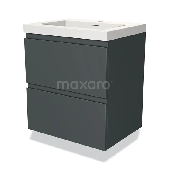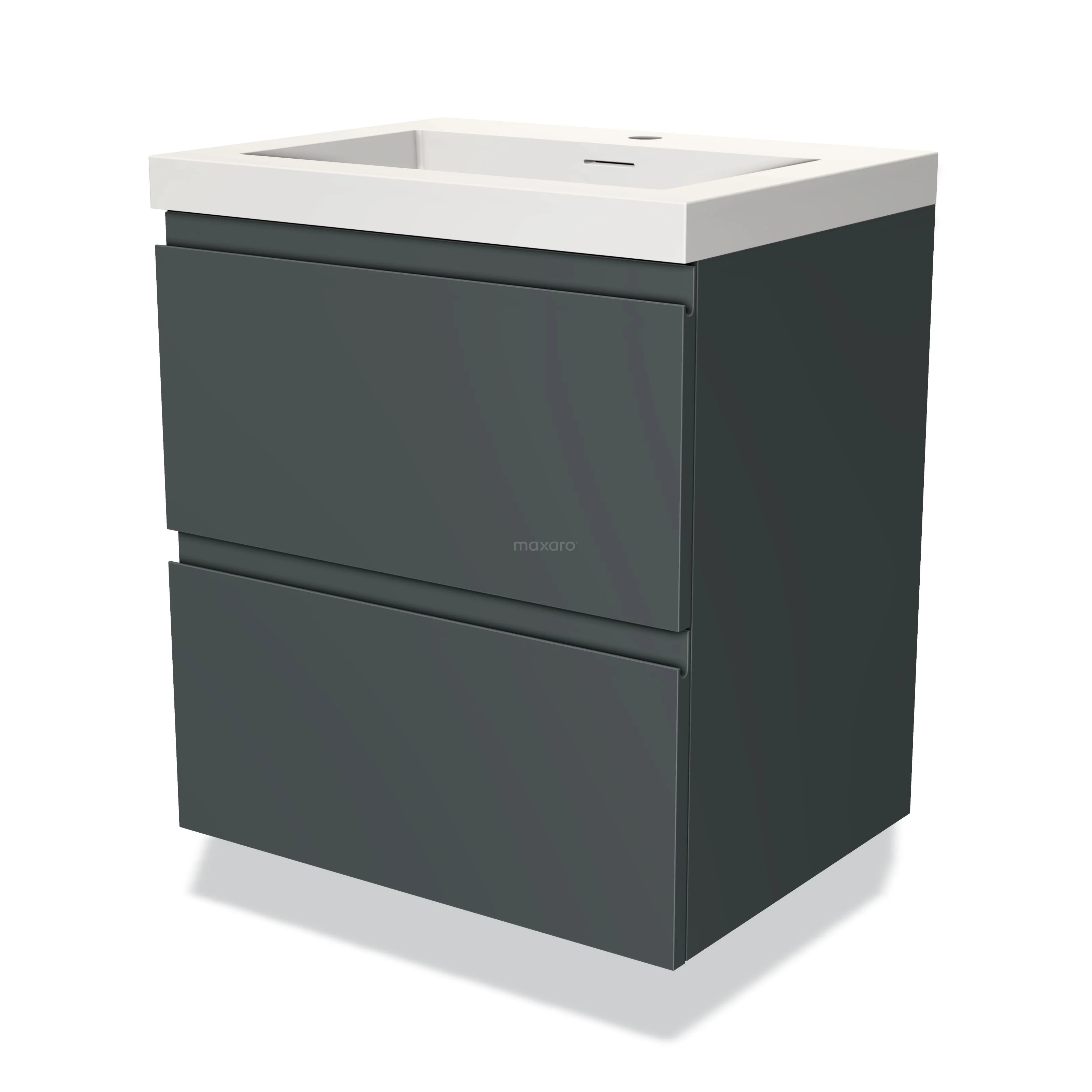 Modulo Waschtische | 60 cm Dunkelgrau Grifflos front Solid Surface 2 übereinanderliegende Schubladen