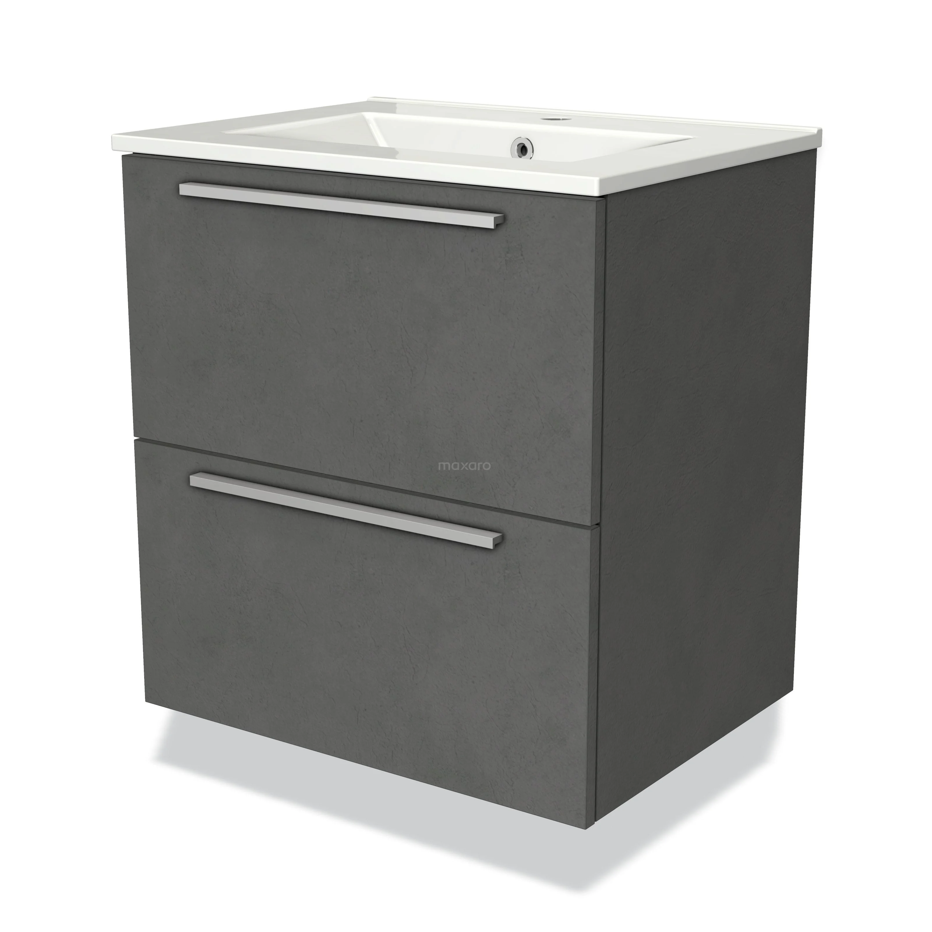 Modulo Waschtische | 60 cm Dunkelgrauer Beton Flach front Keramik 2 übereinanderliegende Schubladen