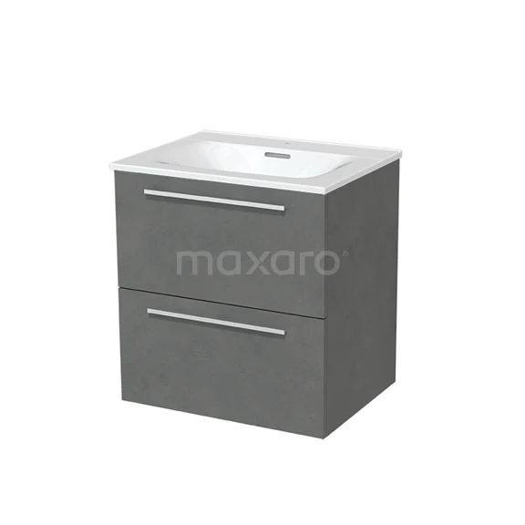 Modulo Waschtische | 60 cm Dunkelgrauer Beton Flach front Keramik 2 übereinanderliegende Schubladen