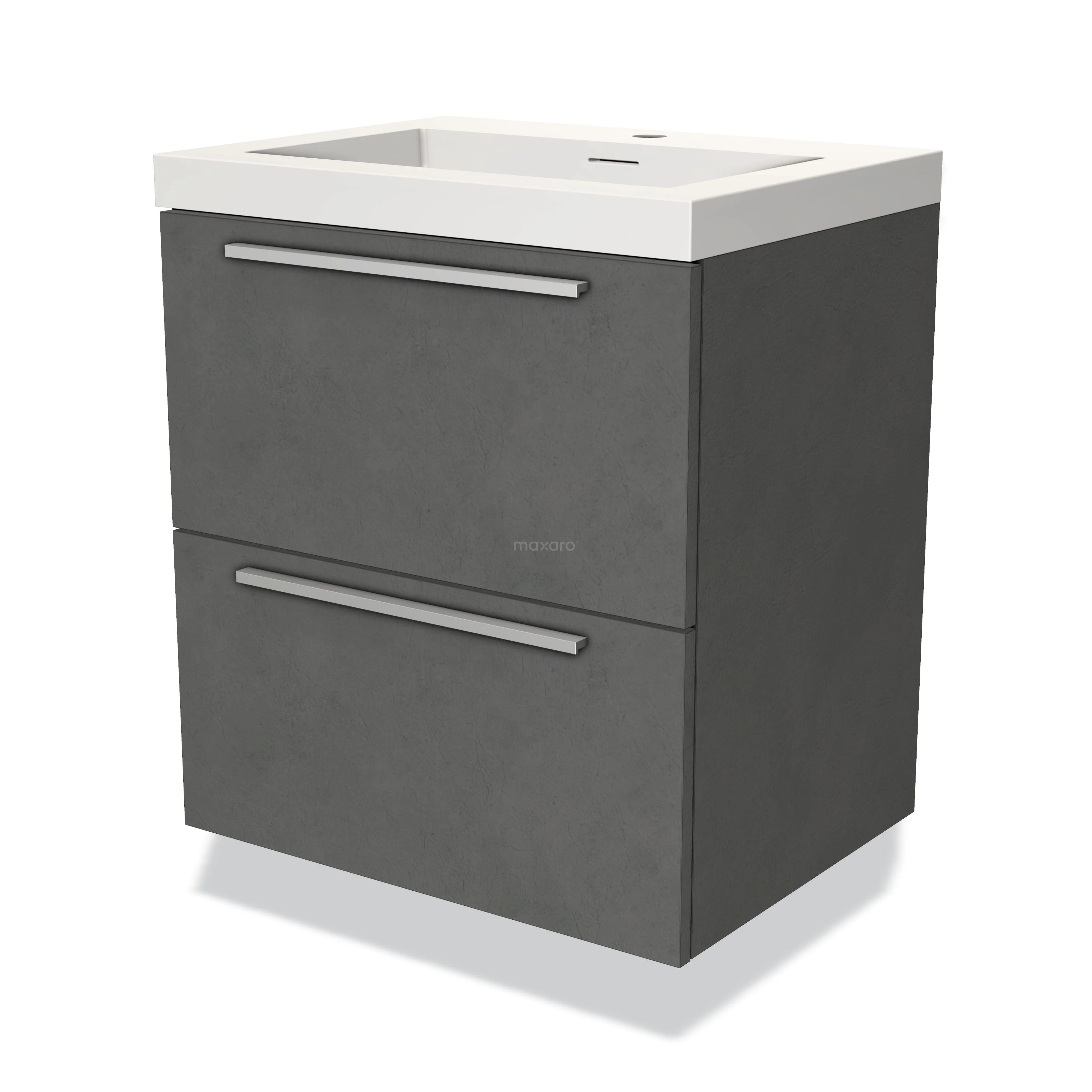 Modulo Waschtische | 60 cm Dunkelgrauer Beton Flach front Solid Surface 2 übereinanderliegende Schubladen