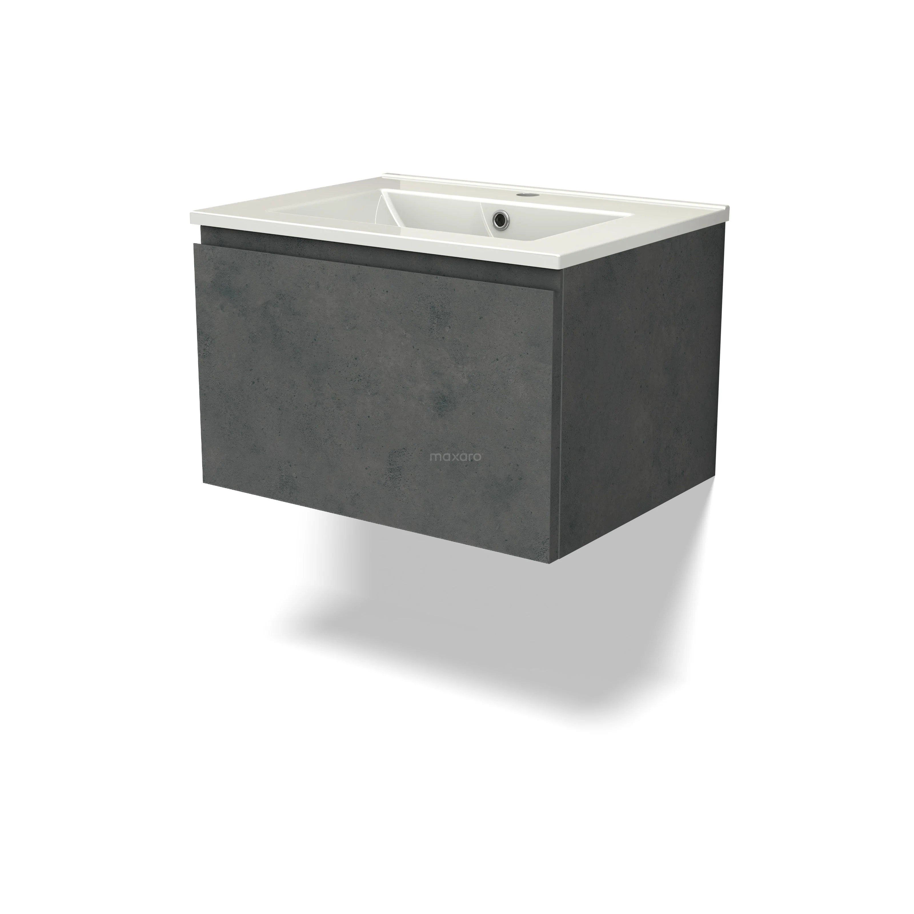 Modulo Waschtische | 60 cm Dunkelgrauer Beton Grifflos front Keramik 1 Schublade