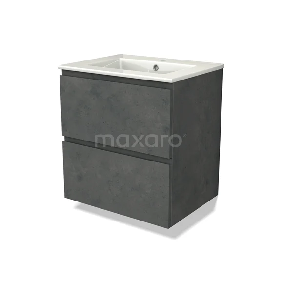 Modulo Waschtische | 60 cm Dunkelgrauer Beton Grifflos front Keramik 2 übereinanderliegende Schubladen
