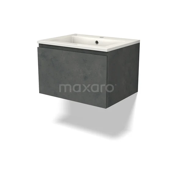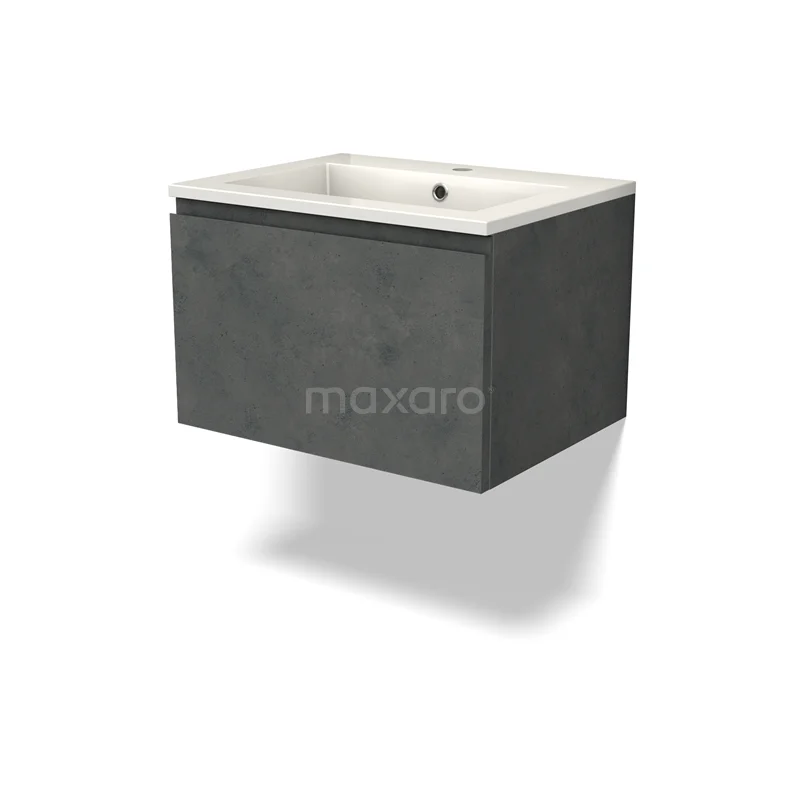 Modulo Waschtische | 60 cm Dunkelgrauer Beton Grifflos front Mineralguss 1 Schublade