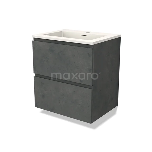 Modulo Waschtische | 60 cm Dunkelgrauer Beton Grifflos front Solid Surface 2 übereinanderliegende Schubladen