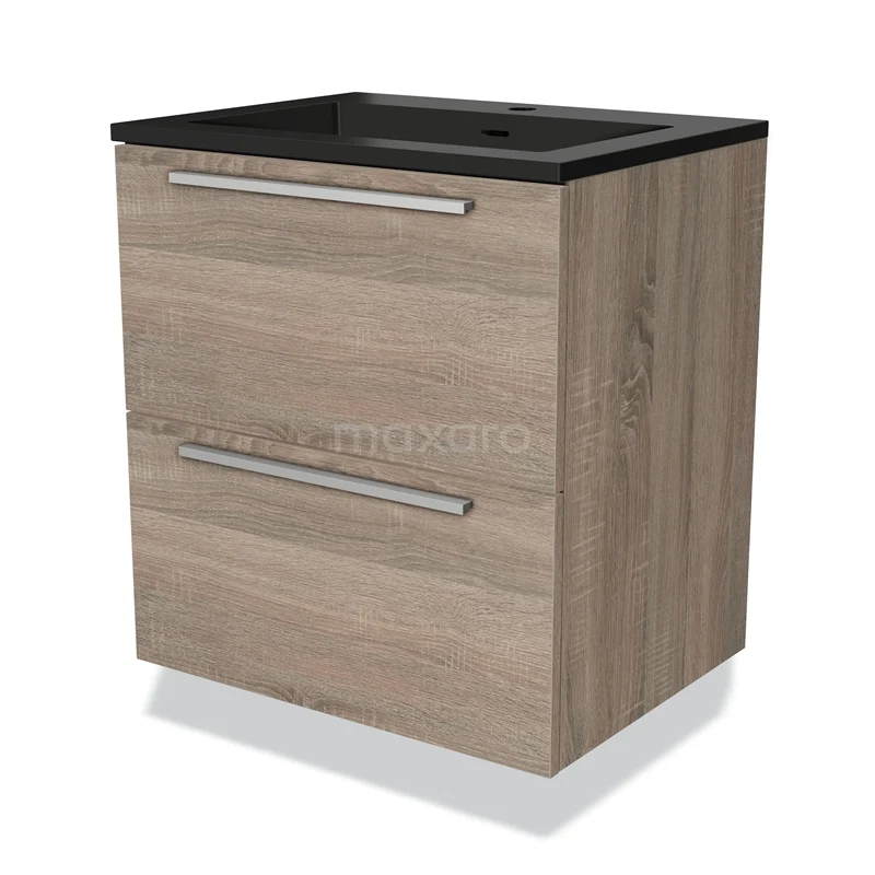 Modulo Waschtische | 60 cm Eiche Flach front Quarz 2 übereinanderliegende Schubladen