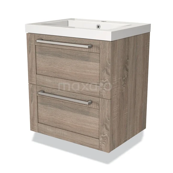 Modulo Waschtische | 60 cm Eiche Rahmen front Mineralguss 2 übereinanderliegende Schubladen