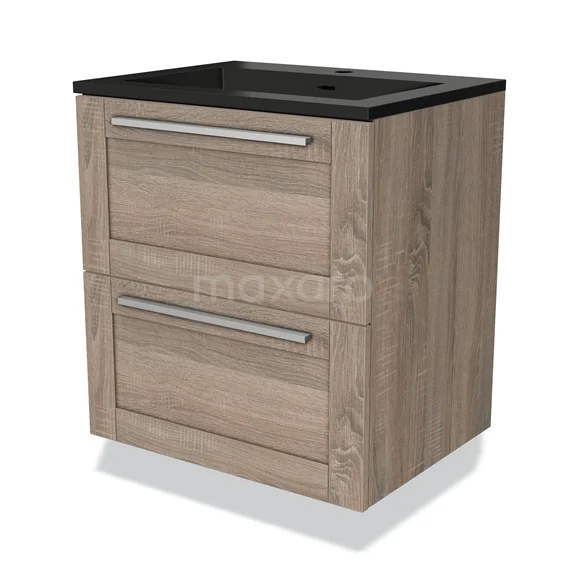 Modulo Waschtische | 60 cm Eiche Rahmen front Quarz 2 übereinanderliegende Schubladen
