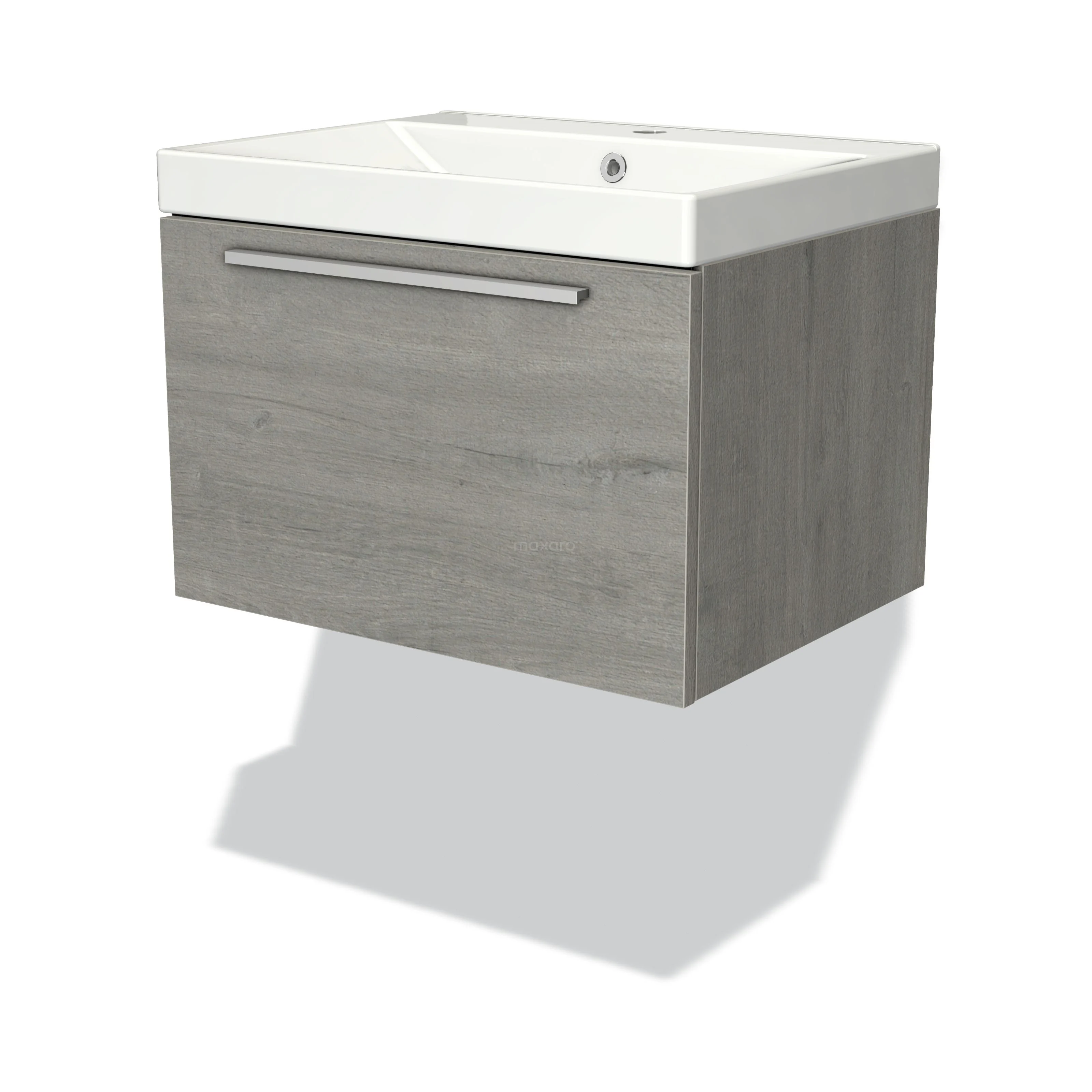 Modulo Waschtische | 60 cm Graue Eiche Flach front Keramik 1 Schublade