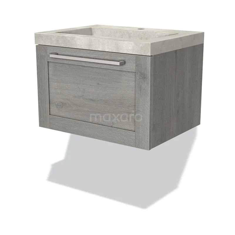 Modulo Waschtische | 60 cm Graue Eiche Rahmen front Beton 1 Schublade