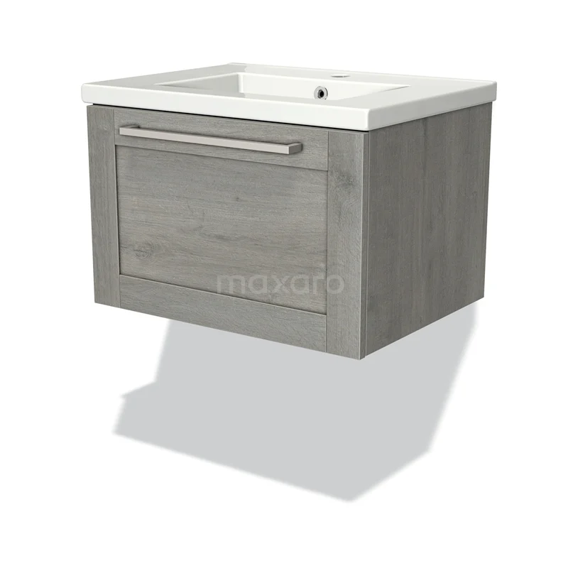 Modulo Waschtische | 60 cm Graue Eiche Rahmen front Keramik 1 Schublade