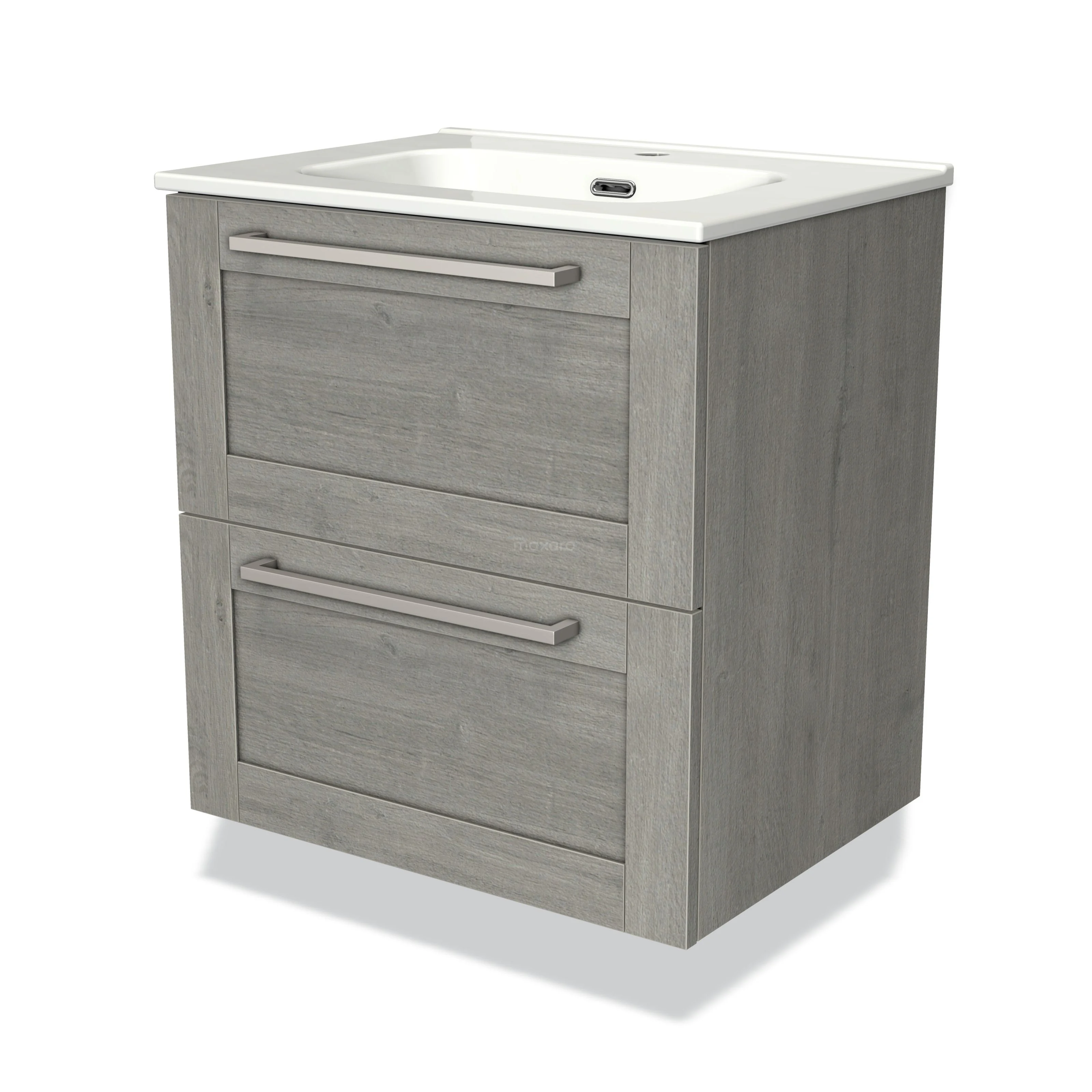 Modulo Waschtische | 60 cm Graue Eiche Rahmen front Keramik 2 übereinanderliegende Schubladen