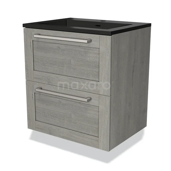 Modulo Waschtische | 60 cm Graue Eiche Rahmen front Quarz 2 übereinanderliegende Schubladen