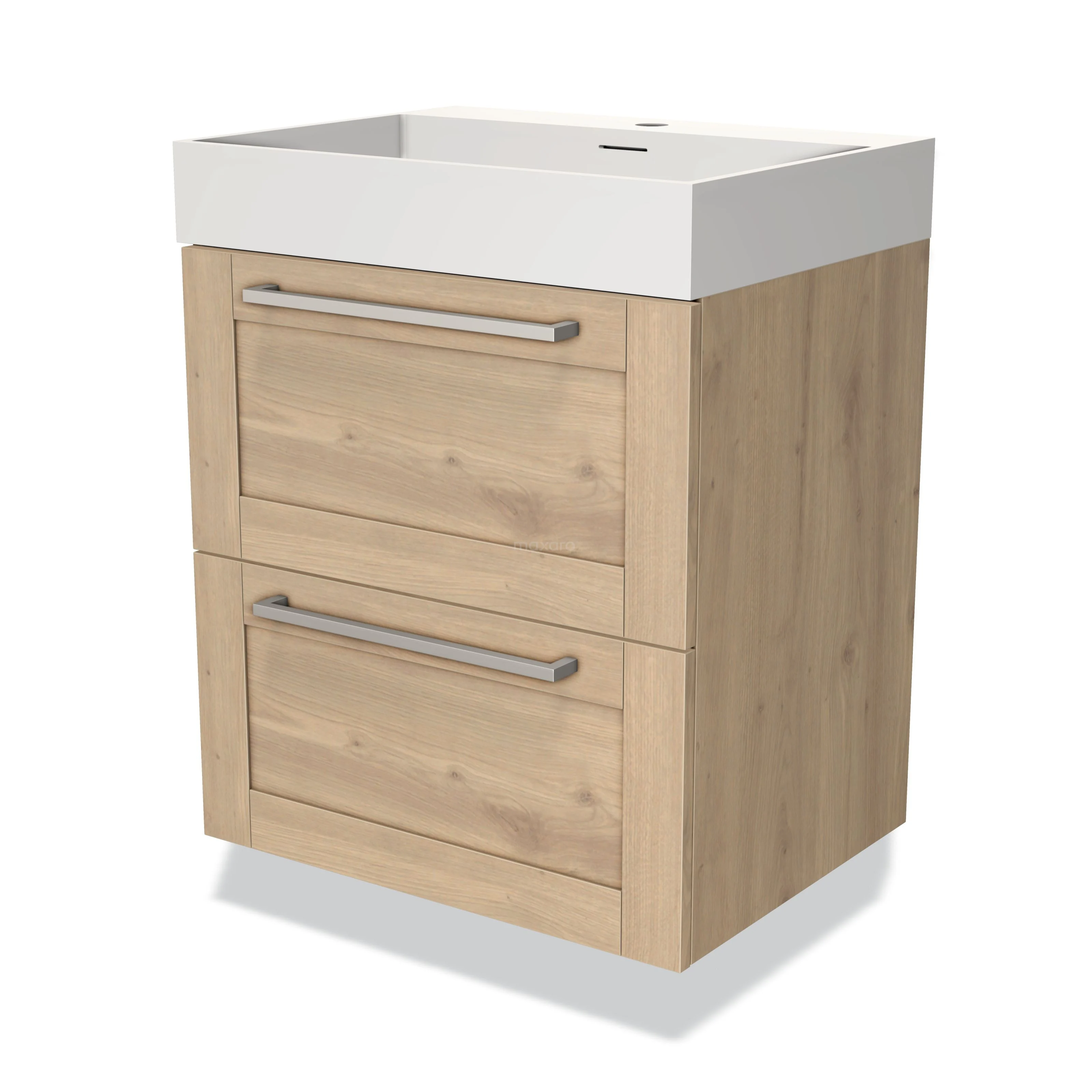 Modulo Waschtische | 60 cm Hellbraune Eiche Rahmen front Solid Surface 2 übereinanderliegende Schubladen