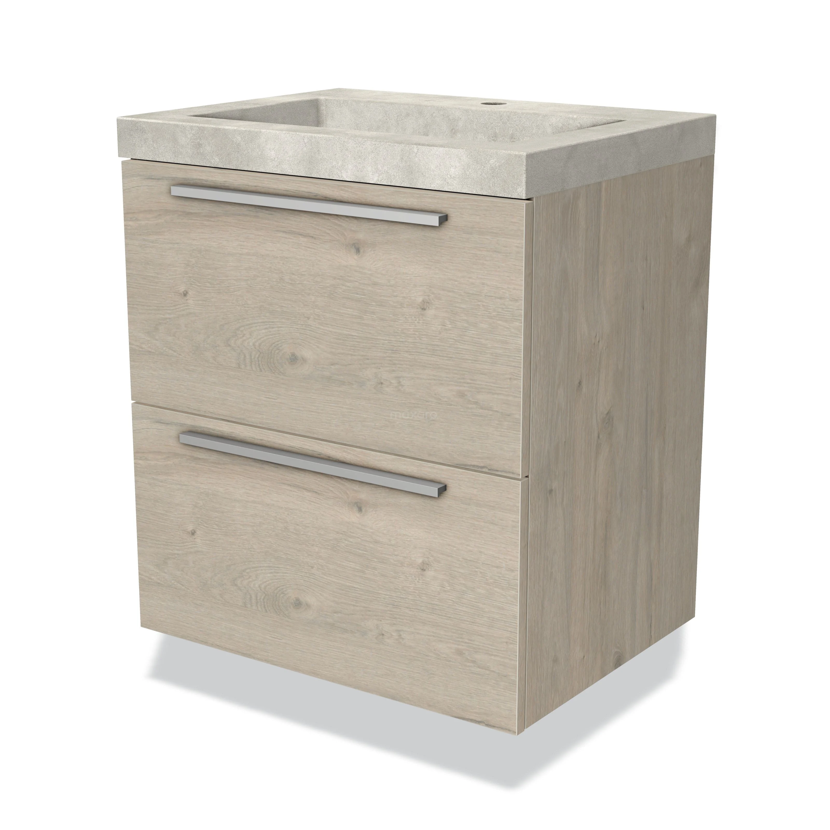Modulo Waschtische | 60 cm Hellgraue Eiche Flach front Beton 2 übereinanderliegende Schubladen