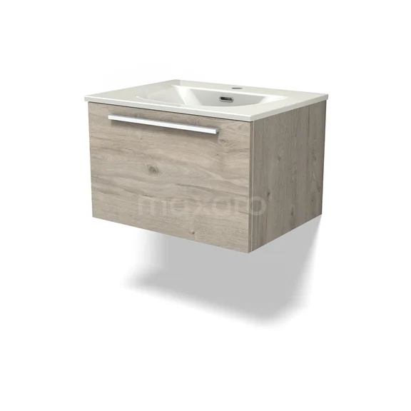 Modulo Waschtische | 60 cm Hellgraue Eiche Flach front Keramik 1 Schublade