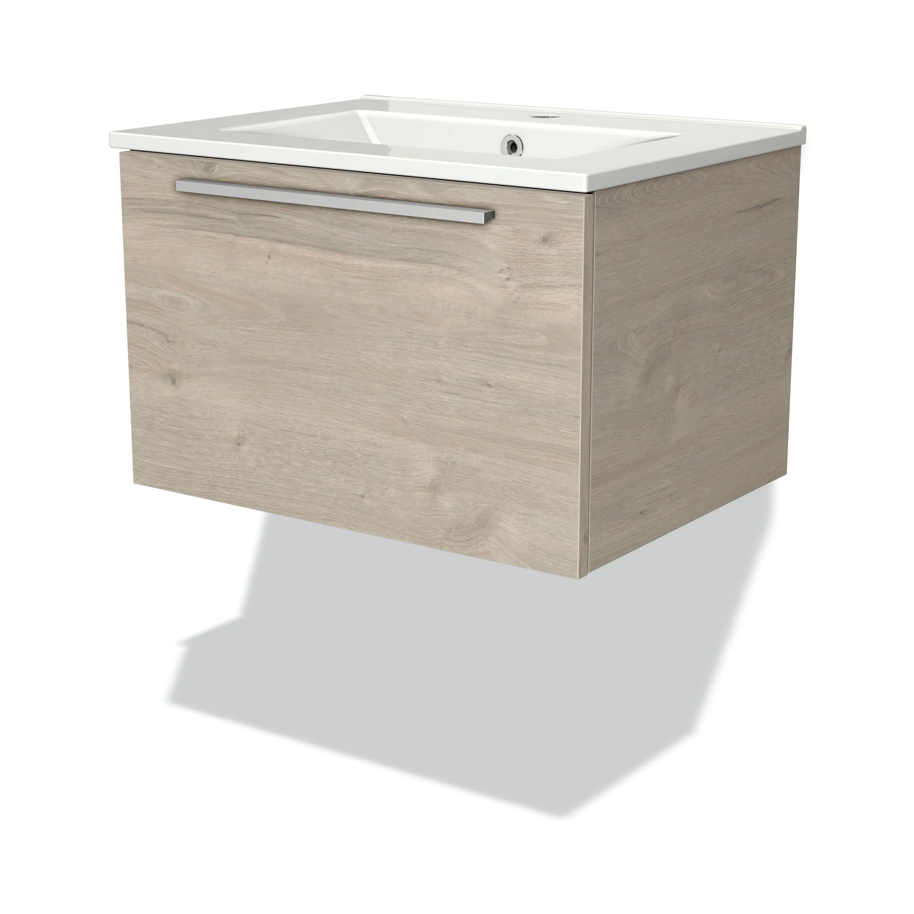 Modulo Waschtische | 60 cm Hellgraue Eiche Flach front Keramik 1 Schublade