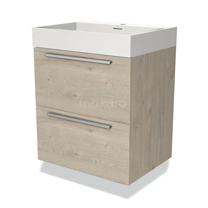 Modulo Waschtische | 60 cm Hellgraue Eiche Flach front Solid Surface 2 übereinanderliegende Schubladen