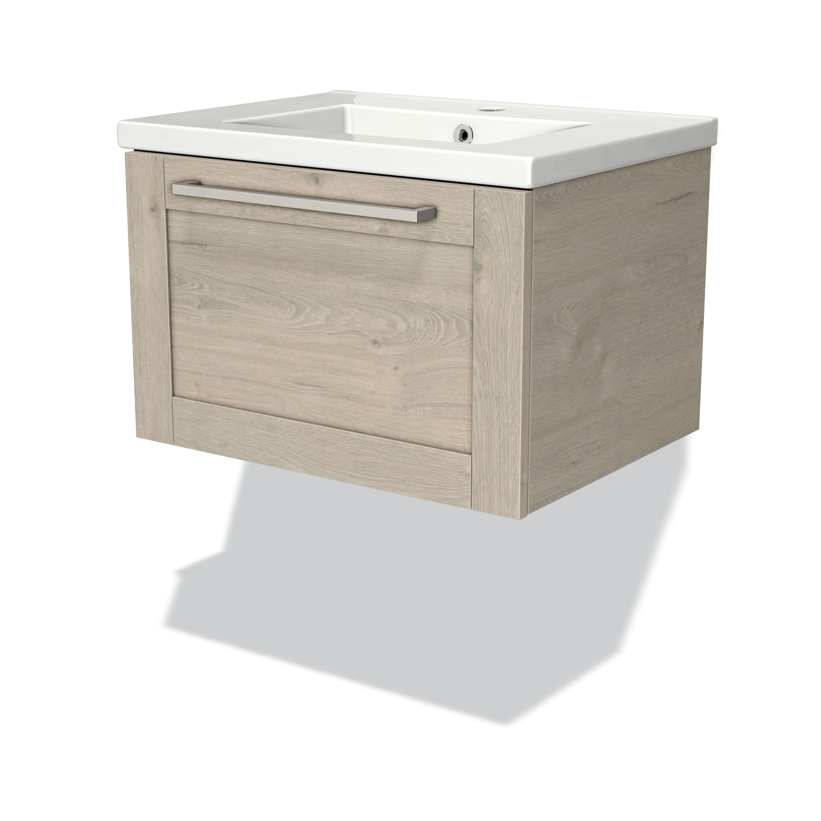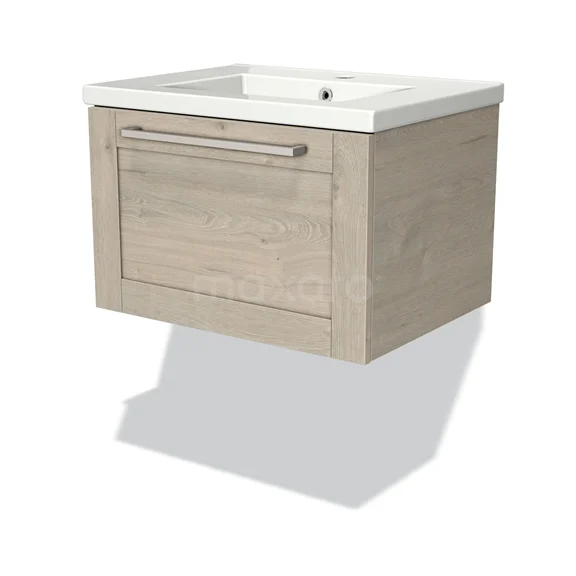 Modulo Waschtische | 60 cm Hellgraue Eiche Rahmen front Keramik 1 Schublade