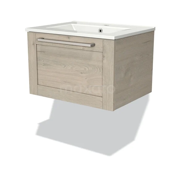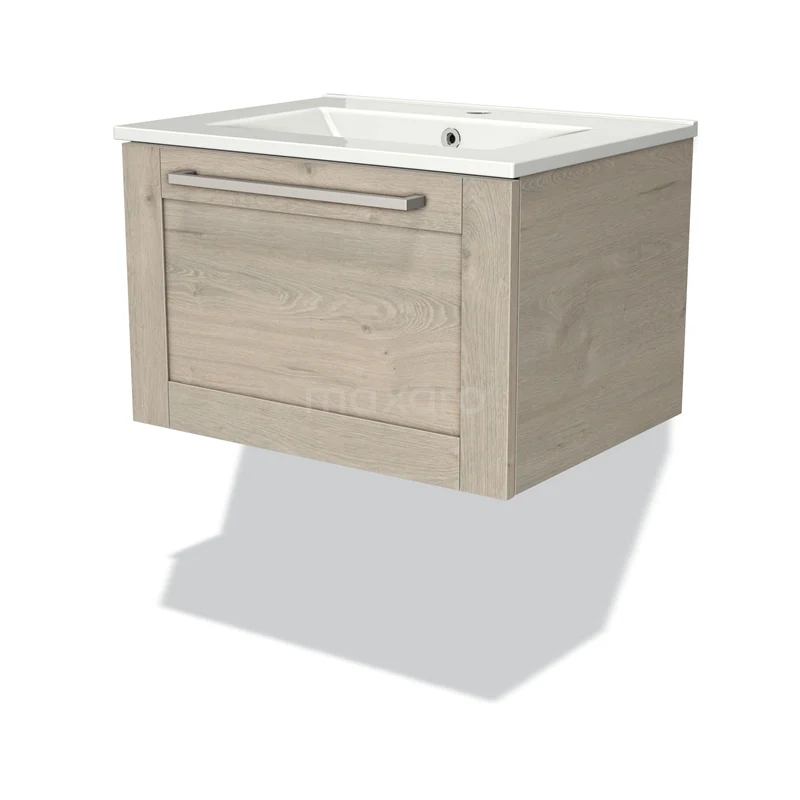 Modulo Waschtische | 60 cm Hellgraue Eiche Rahmen front Keramik 1 Schublade
