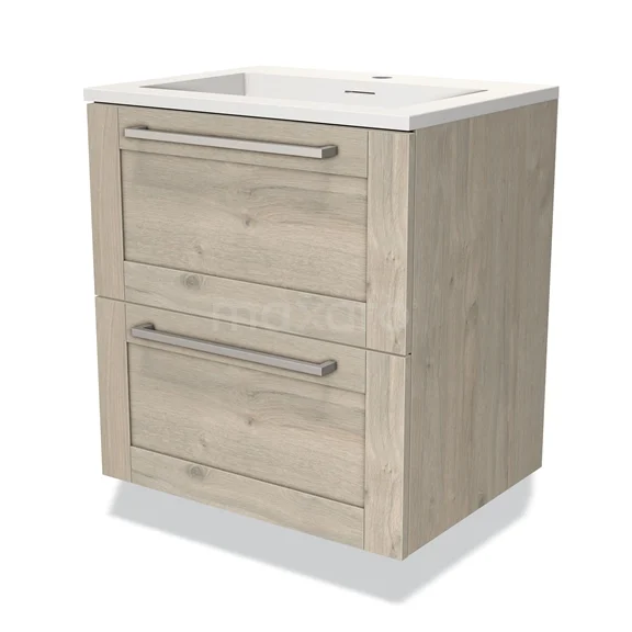 Modulo Waschtische | 60 cm Hellgraue Eiche Rahmen front Solid Surface 2 übereinanderliegende Schubladen