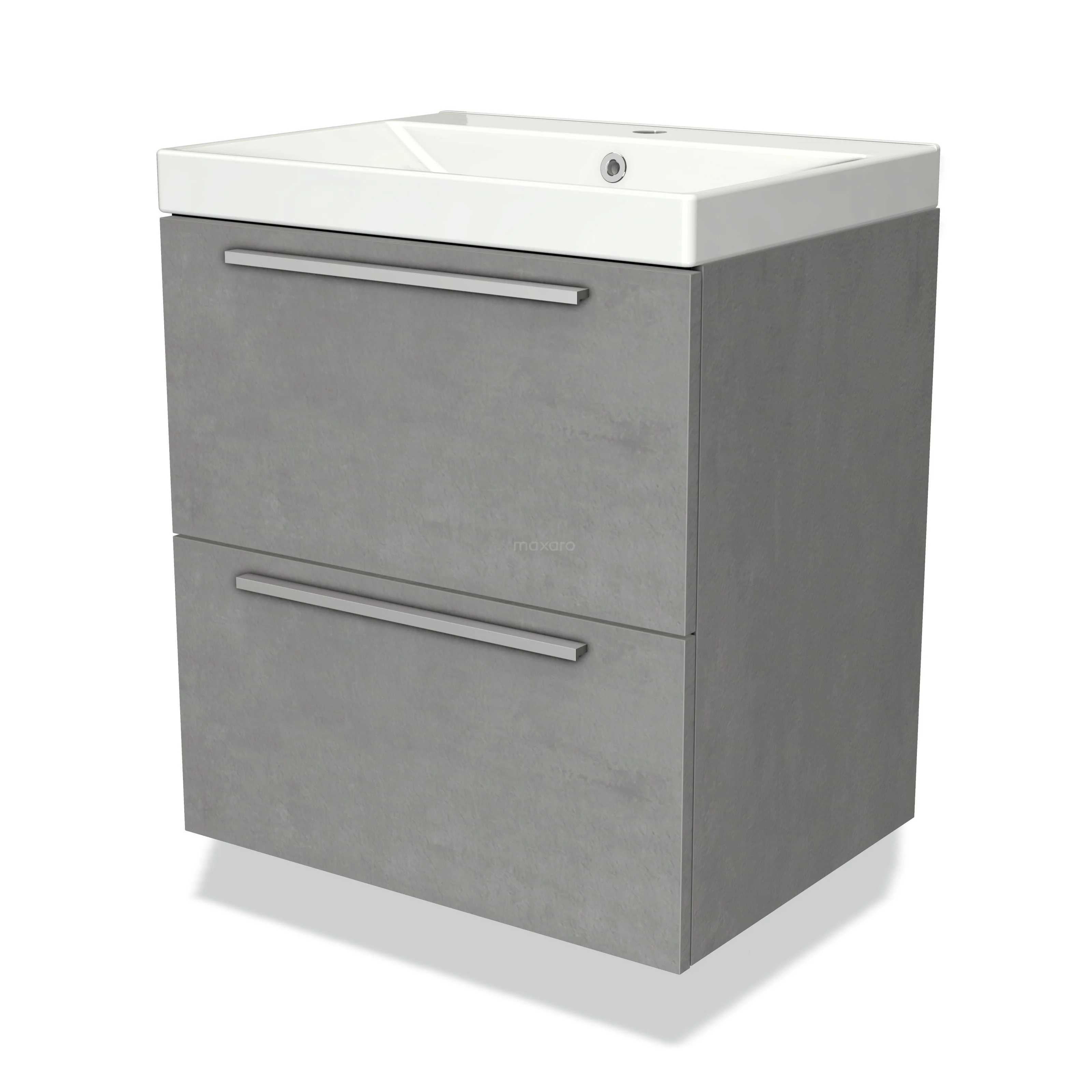 Modulo Waschtische | 60 cm Hellgrauer Beton Flach front Keramik 2 übereinanderliegende Schubladen
