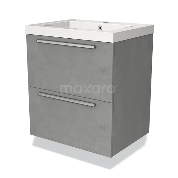 Modulo Waschtische | 60 cm Hellgrauer Beton Flach front Mineralguss 2 übereinanderliegende Schubladen