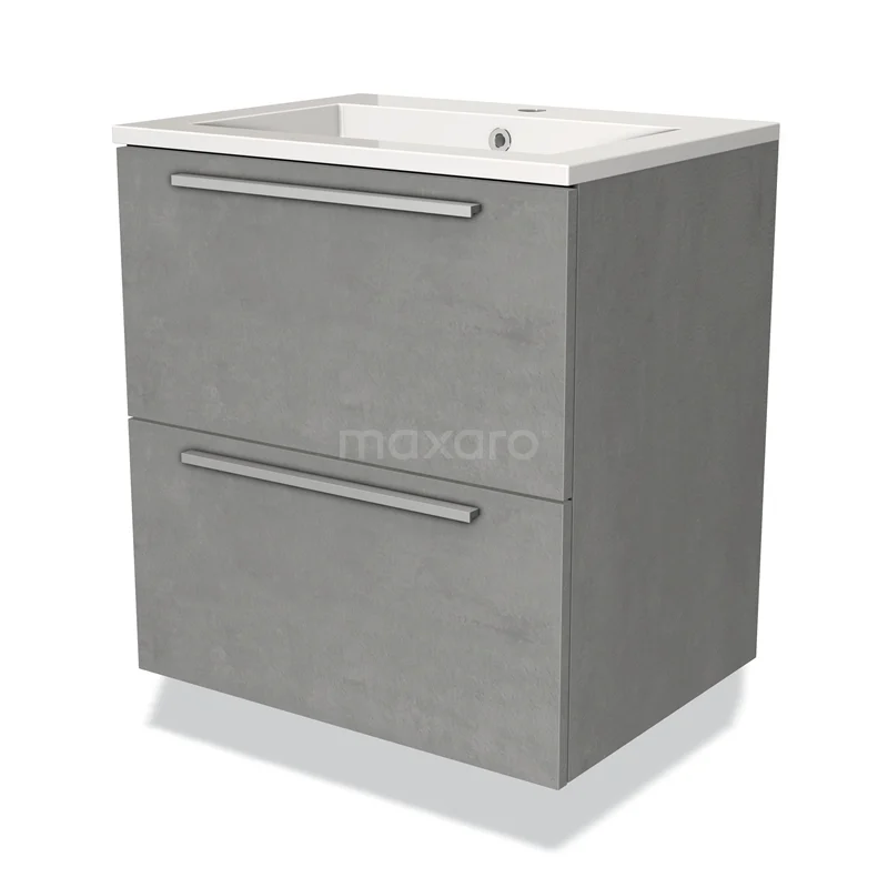 Modulo Waschtische | 60 cm Hellgrauer Beton Flach front Mineralguss 2 übereinanderliegende Schubladen