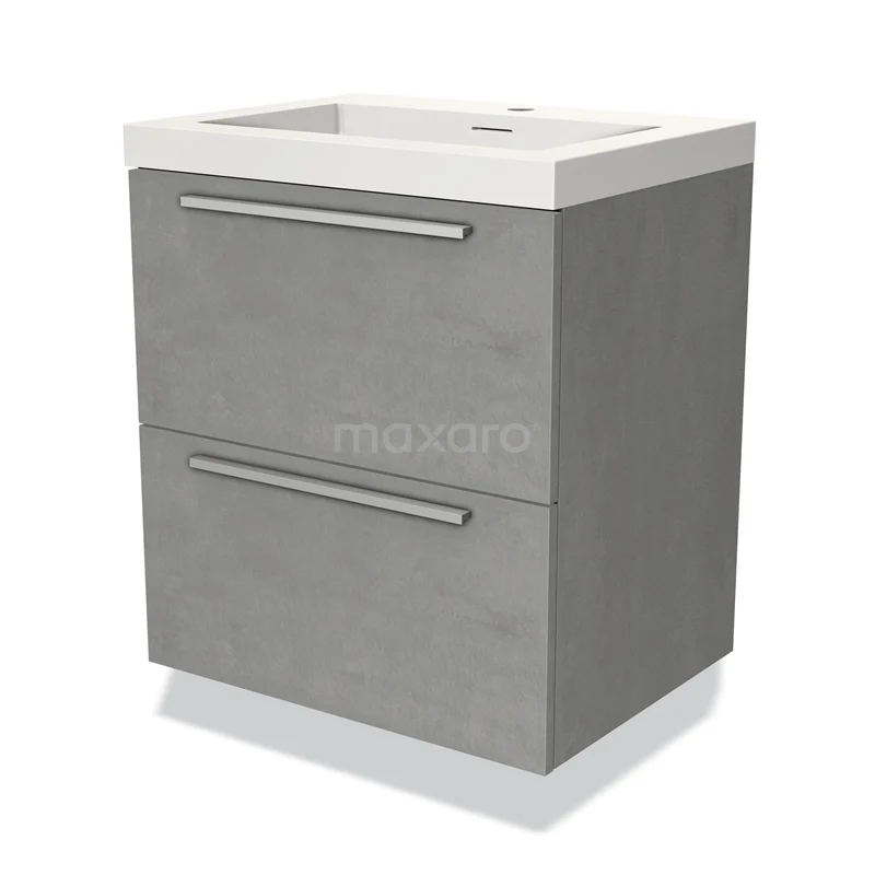Modulo Waschtische | 60 cm Hellgrauer Beton Flach front Solid Surface 2 übereinanderliegende Schubladen