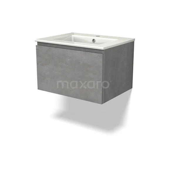 Modulo Waschtische | 60 cm Hellgrauer Beton Grifflos front Keramik 1 Schublade
