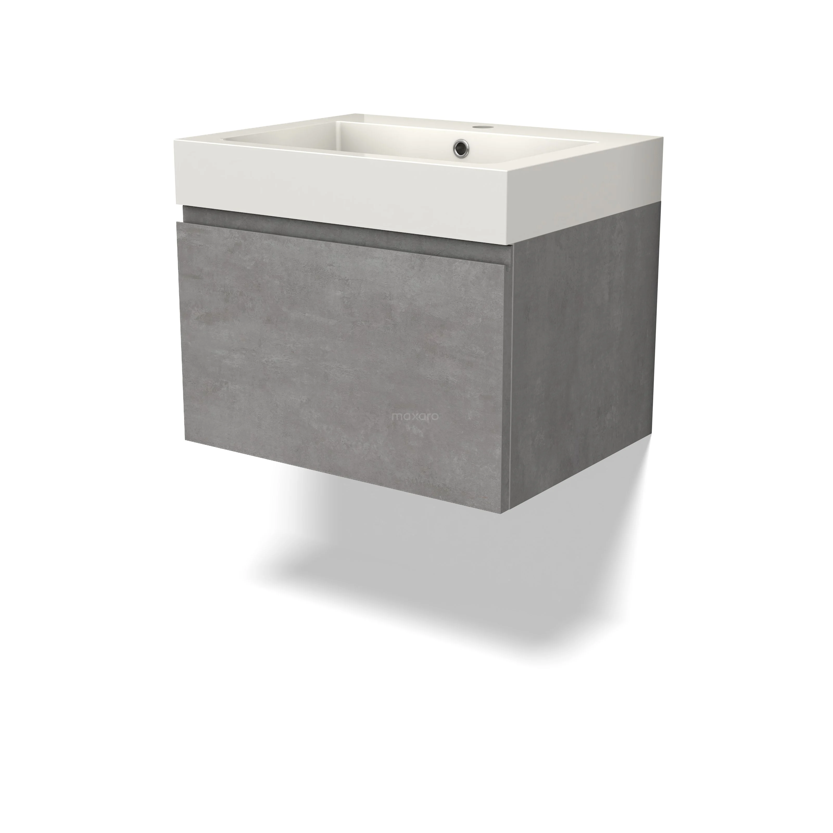 Modulo Waschtische | 60 cm Hellgrauer Beton Grifflos front Mineralguss 1 Schublade