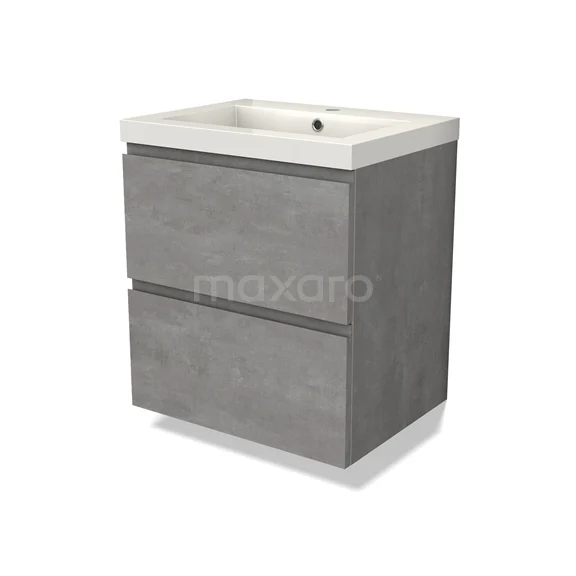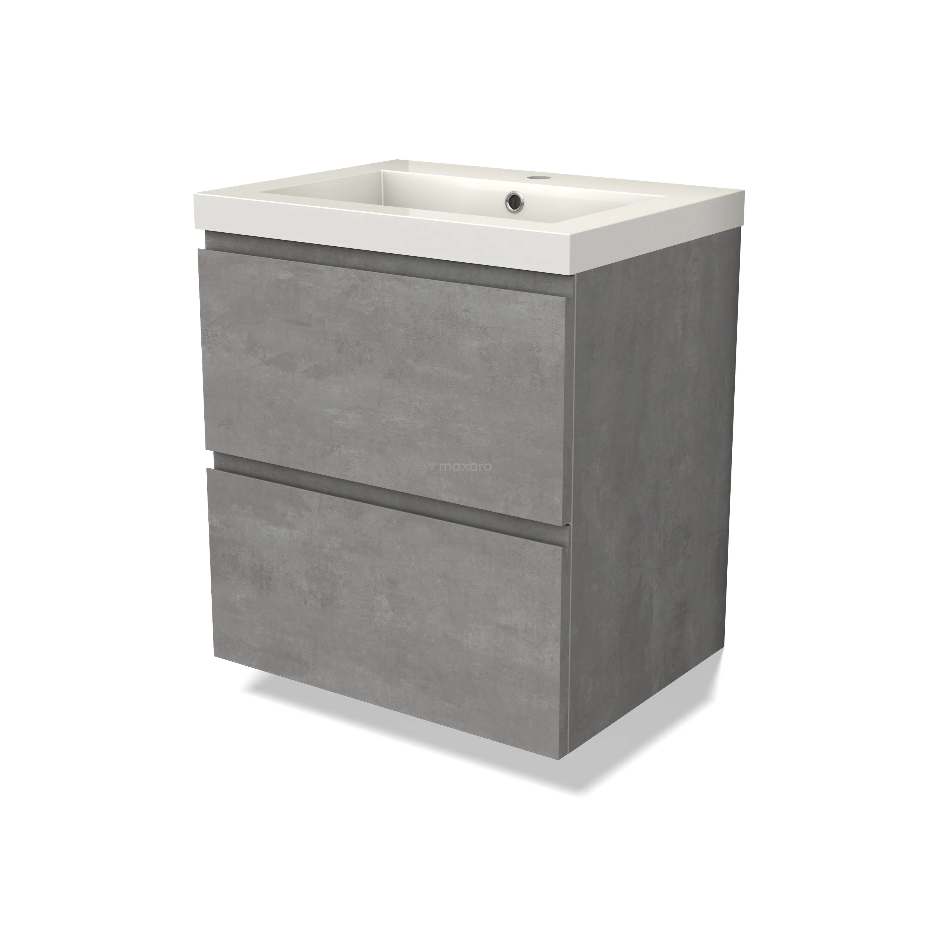 Modulo Waschtische | 60 cm Hellgrauer Beton Grifflos front Mineralguss 2 übereinanderliegende Schubladen