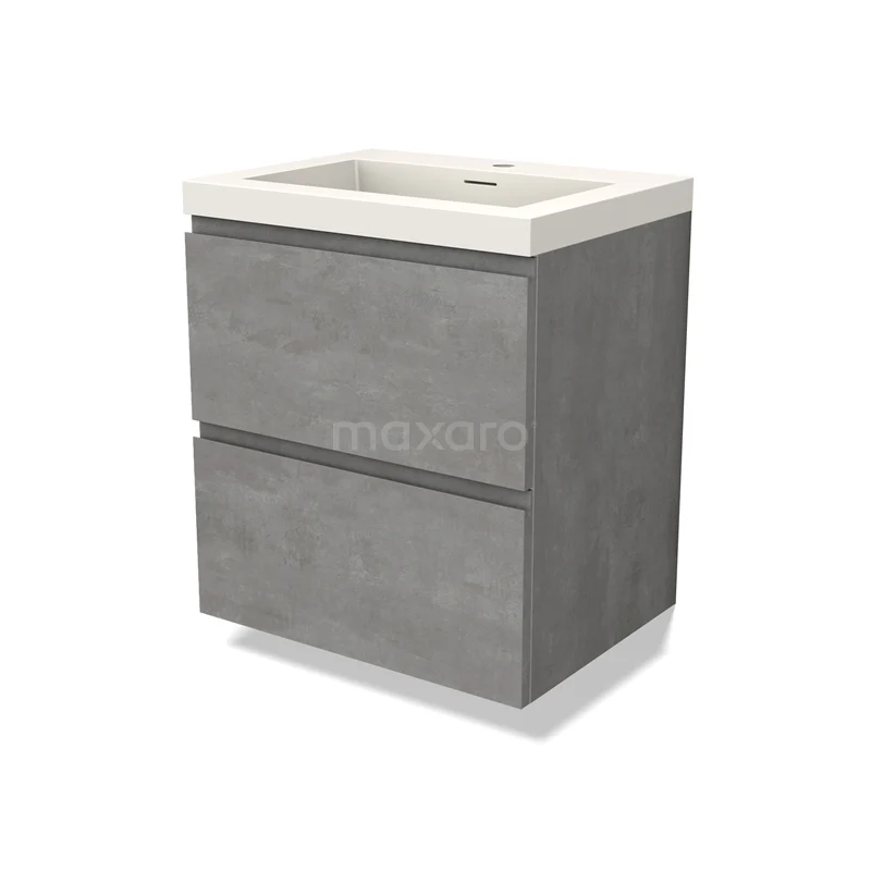 Modulo Waschtische | 60 cm Hellgrauer Beton Grifflos front Solid Surface 2 übereinanderliegende Schubladen