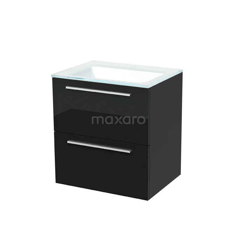 Modulo Waschtische | 60 cm Hochglanz Schwarz Flach front Glas 2 übereinanderliegende Schubladen