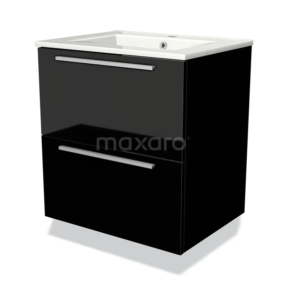 Modulo Waschtische | 60 cm Hochglanz Schwarz Flach front Keramik 2 übereinanderliegende Schubladen