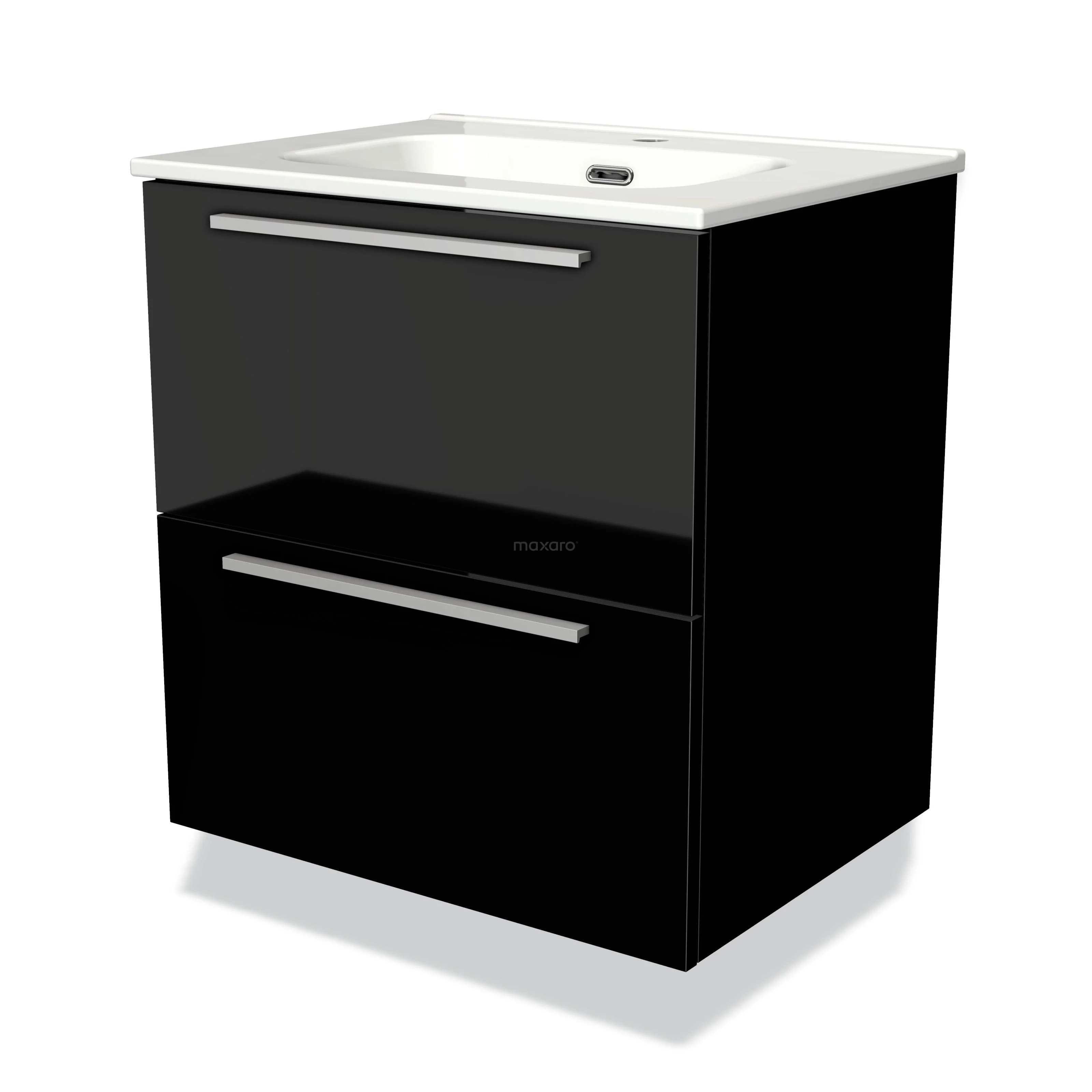 Modulo Waschtische | 60 cm Hochglanz Schwarz Flach front Keramik 2 übereinanderliegende Schubladen