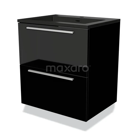 Modulo Waschtische | 60 cm Hochglanz Schwarz Flach front Quarz 2 übereinanderliegende Schubladen