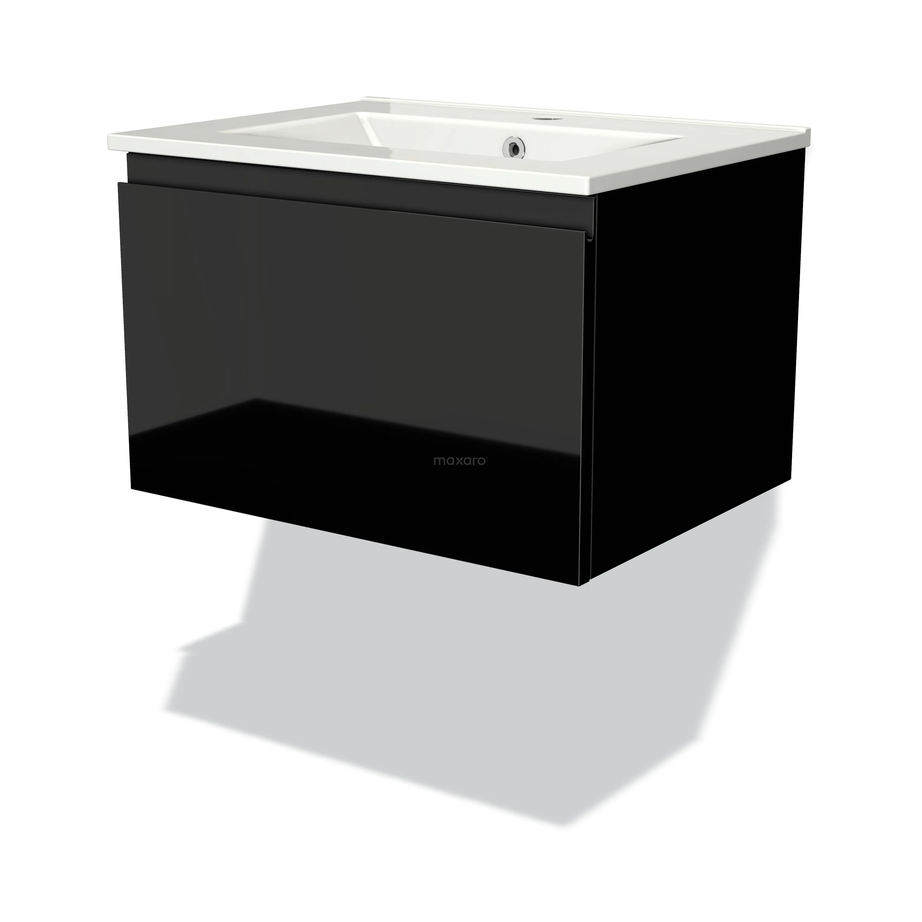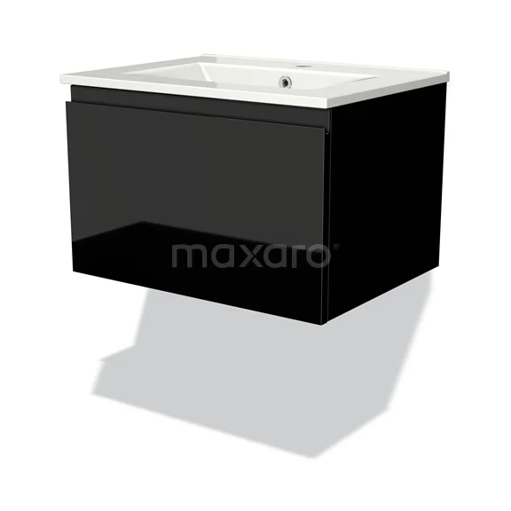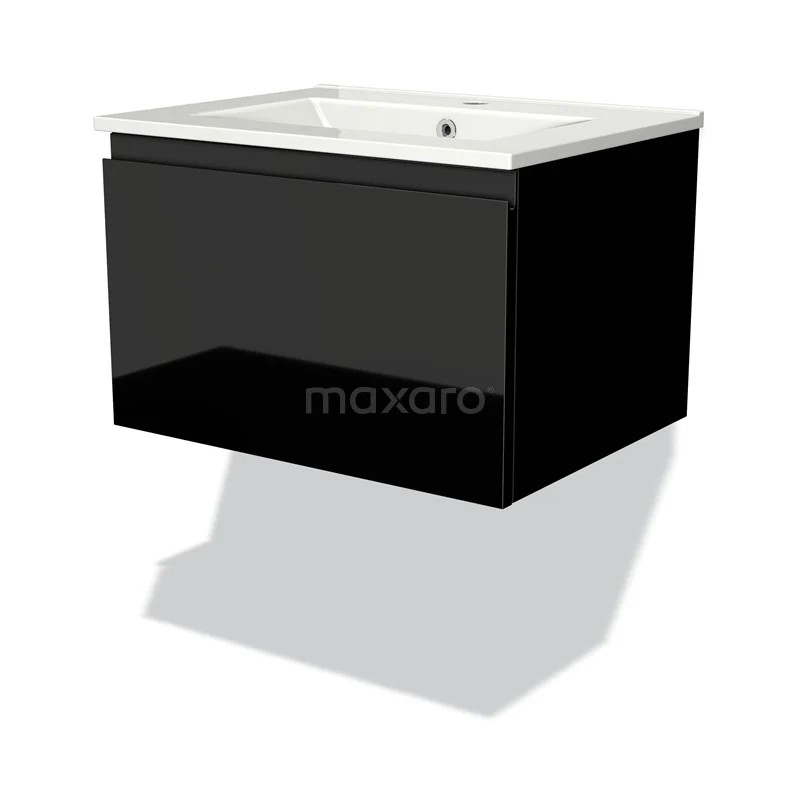 Modulo Waschtische | 60 cm Hochglanz Schwarz Grifflos front Keramik 1 Schublade