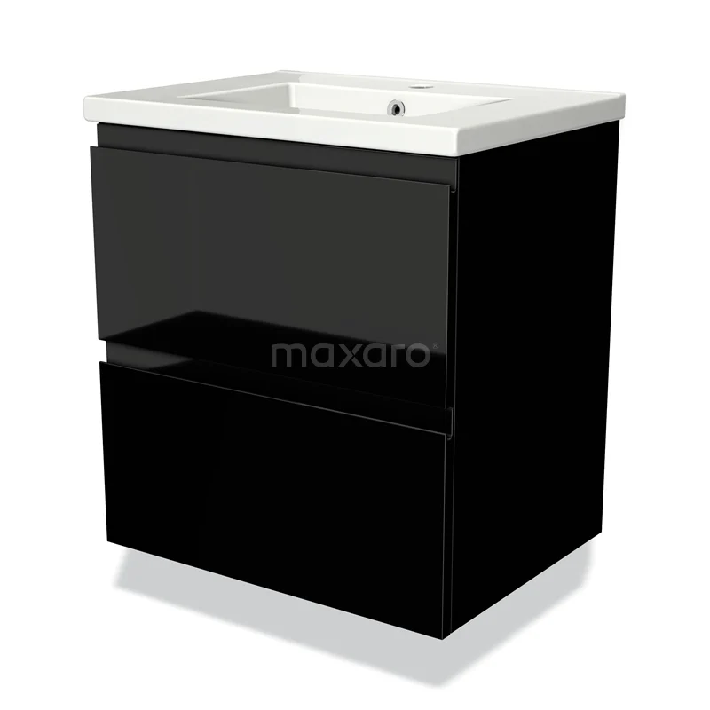 Modulo Waschtische | 60 cm Hochglanz Schwarz Grifflos front Keramik 2 übereinanderliegende Schubladen