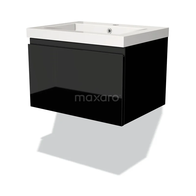 Modulo Waschtische | 60 cm Hochglanz Schwarz Grifflos front Mineralguss 1 Schublade