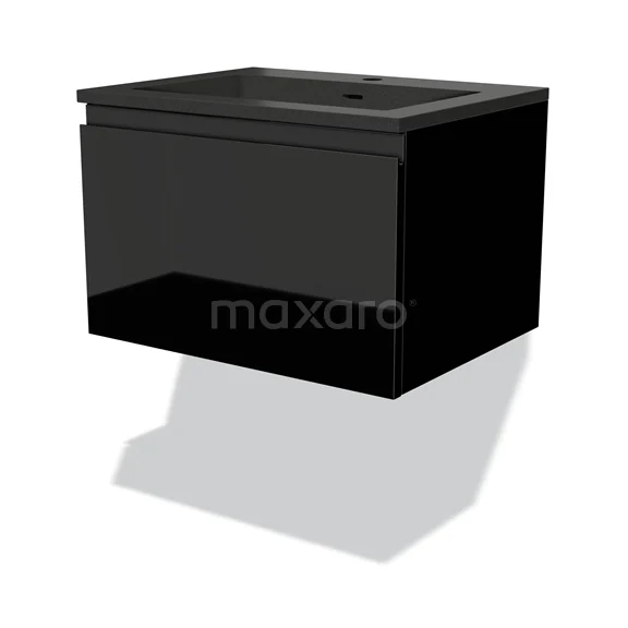 Modulo Waschtische | 60 cm Hochglanz Schwarz Grifflos front Quarz 1 Schublade