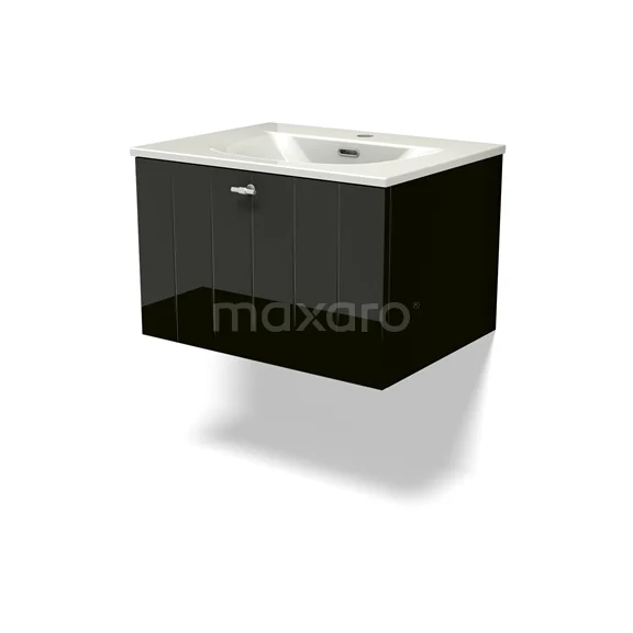 Modulo Waschtische | 60 cm Hochglanz Schwarz Lamelle front Keramik 1 Schublade
