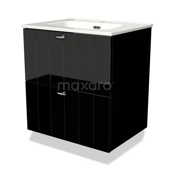 Modulo Waschtische | 60 cm Hochglanz Schwarz Lamelle front Keramik 2 übereinanderliegende Schubladen