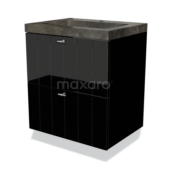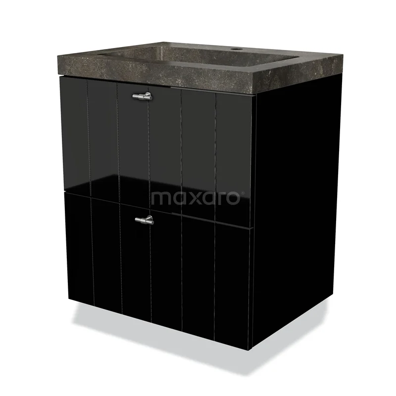 Modulo Waschtische | 60 cm Hochglanz Schwarz Lamelle front Naturstein 2 übereinanderliegende Schubladen