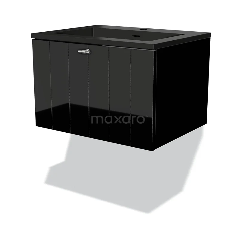 Modulo Waschtische | 60 cm Hochglanz Schwarz Lamelle front Quarz 1 Schublade