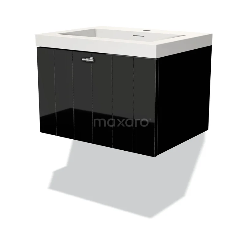 Modulo Waschtische | 60 cm Hochglanz Schwarz Lamelle front Solid Surface 1 Schublade