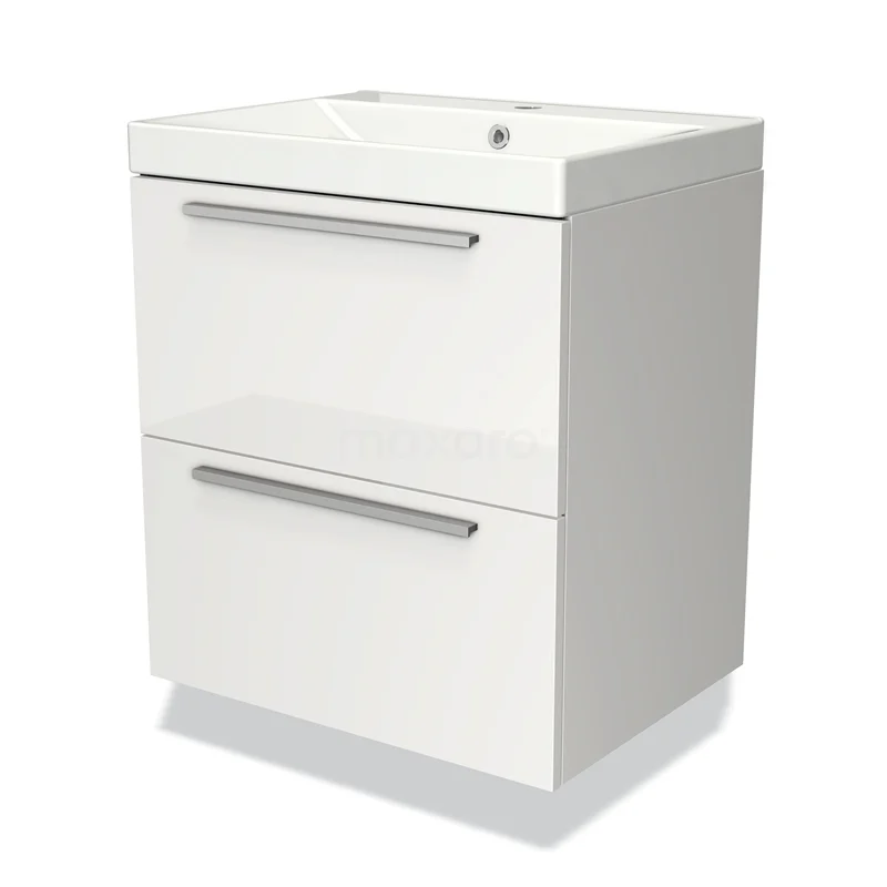 Modulo Waschtische | 60 cm Hochglanz Weiß Flach front Keramik 2 übereinanderliegende Schubladen