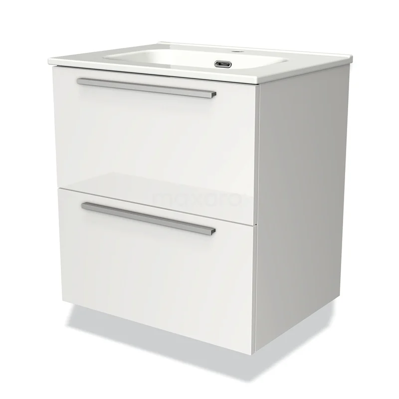 Modulo Waschtische | 60 cm Hochglanz Weiß Flach front Keramik 2 übereinanderliegende Schubladen