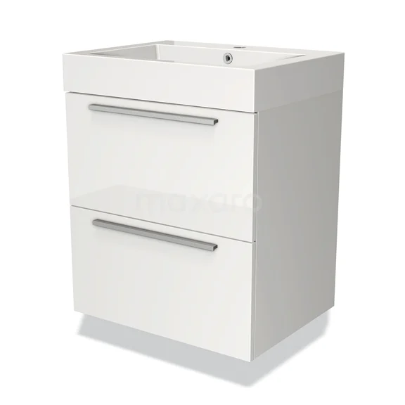 Modulo Waschtische | 60 cm Hochglanz Weiß Flach front Mineralguss 2 übereinanderliegende Schubladen