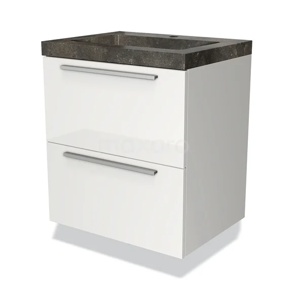 Modulo Waschtische | 60 cm Hochglanz Weiß Flach front Naturstein 2 übereinanderliegende Schubladen